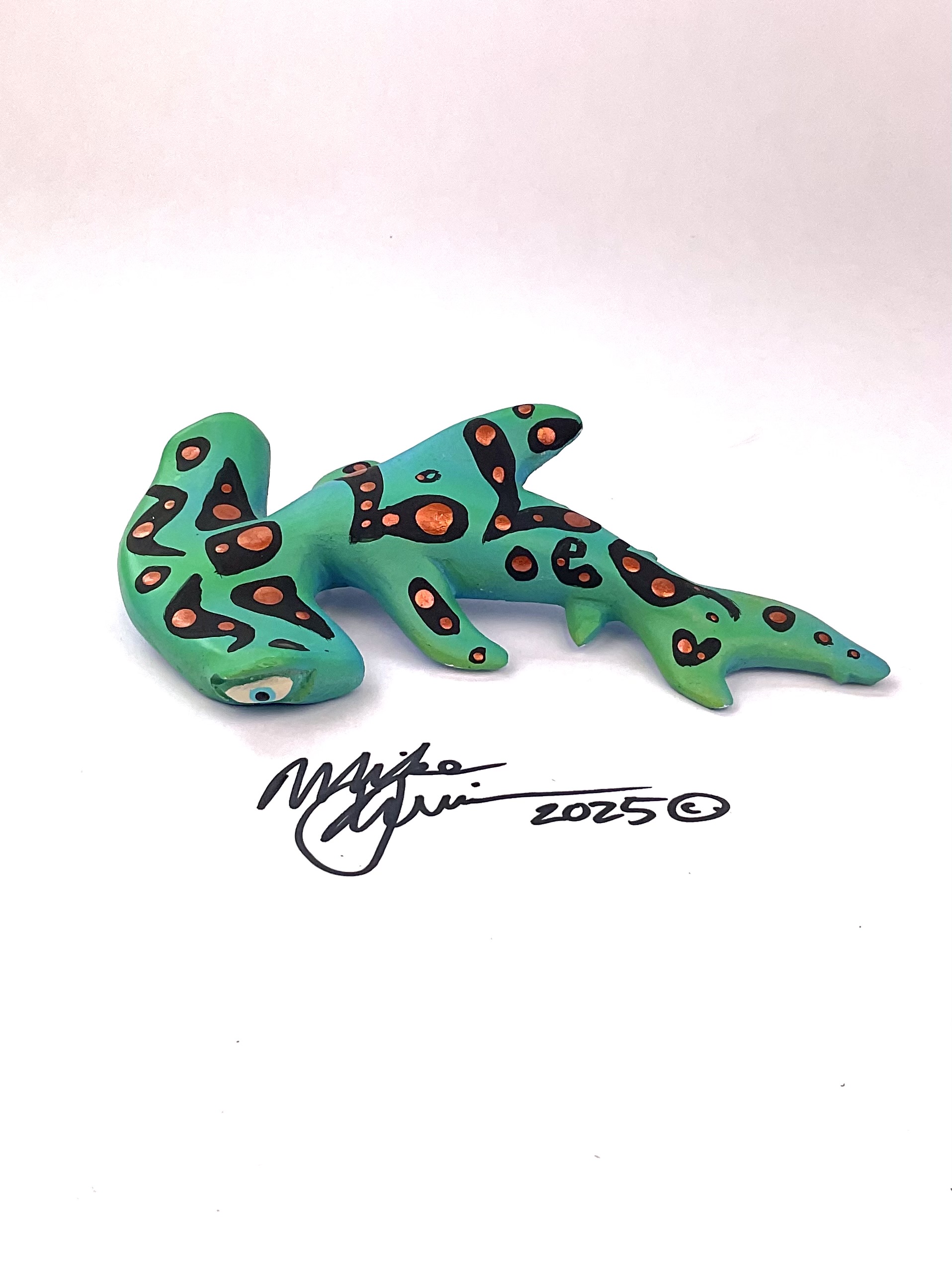 This piece is designed and created by artist Mike Quinn, it’s part of his Fish with Attitude collection. It’s one of a kind nature means it will have unique markings, design, spots, teeth, fur, claws or whatever is applicable to the creature posted.