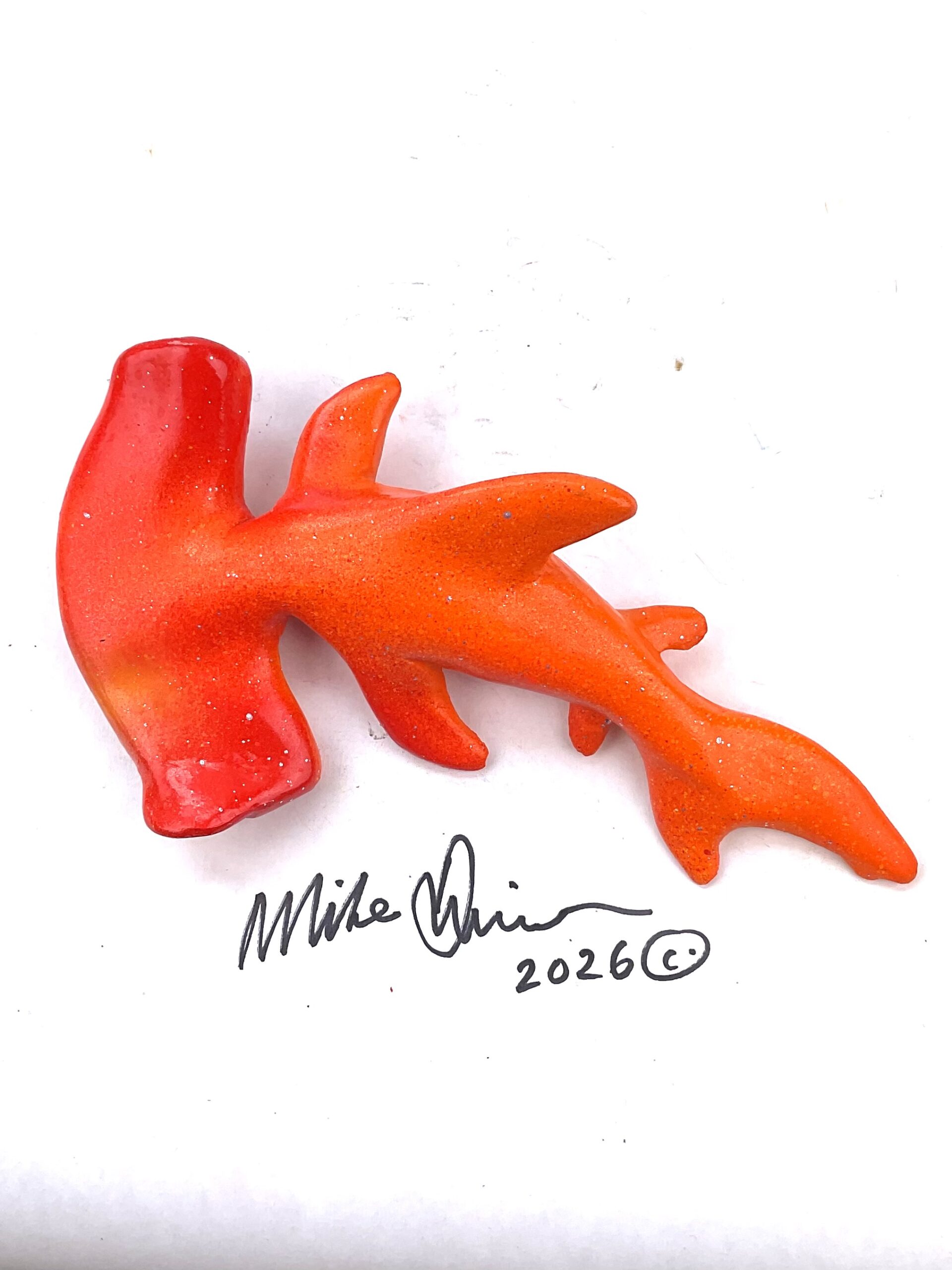 This piece is designed and created by artist Mike Quinn, it’s part of his Fish with Attitude collection. It’s one of a kind nature means it will have unique markings, design, spots, teeth, fur, claws or whatever is applicable to the creature posted.