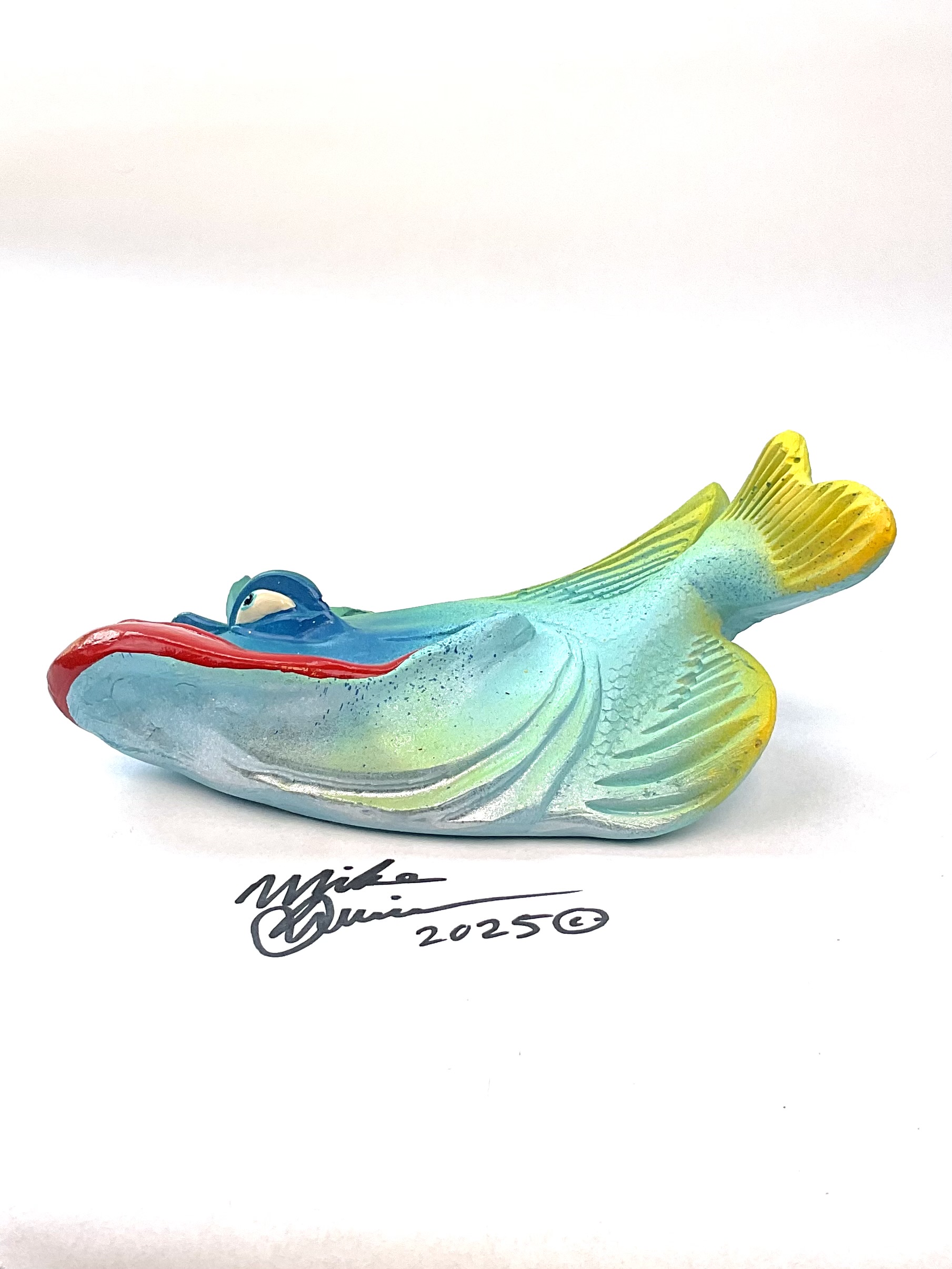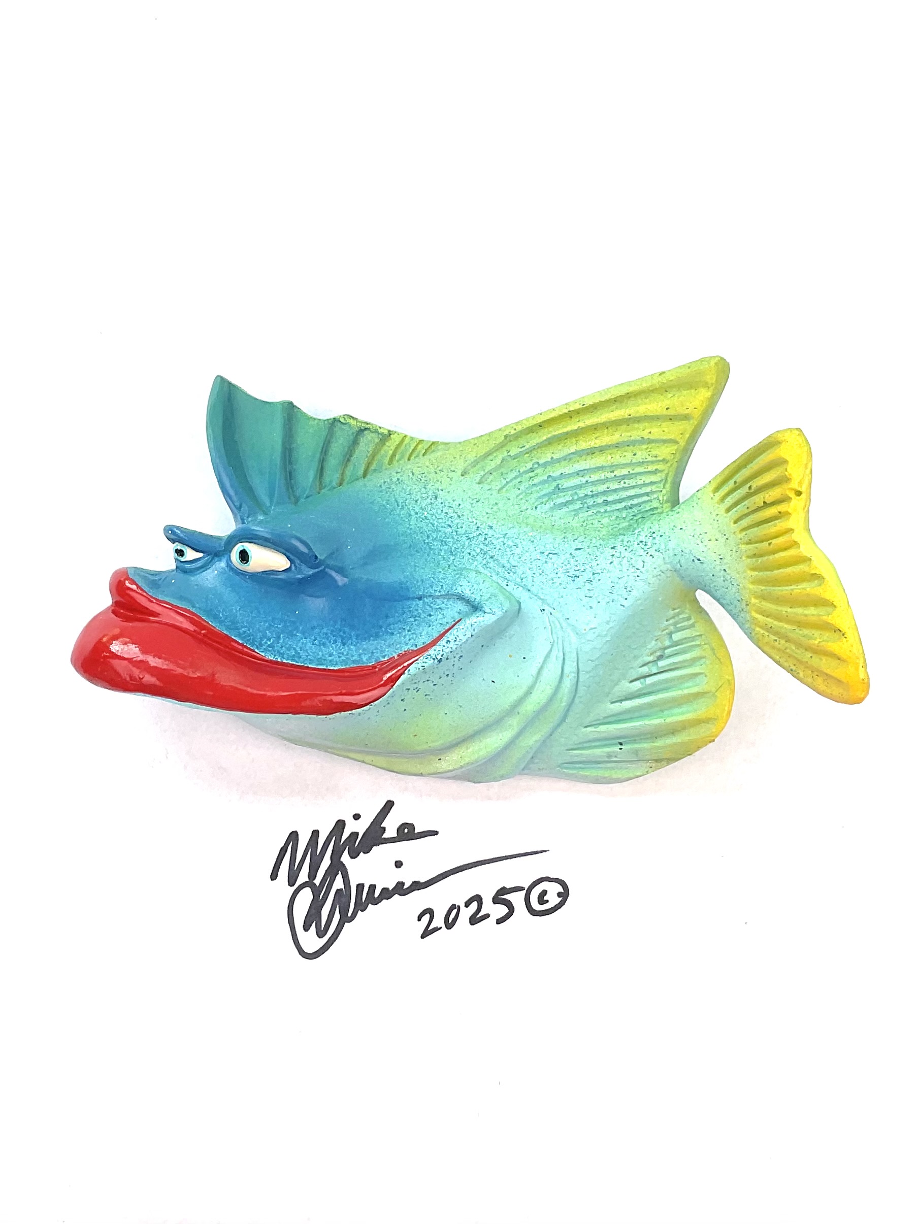 This piece is designed and created by artist Mike Quinn, it’s part of his Fish with Attitude collection. It’s one of a kind nature means it will have unique markings, design, spots, teeth, fur, claws or whatever is applicable to the creature posted.