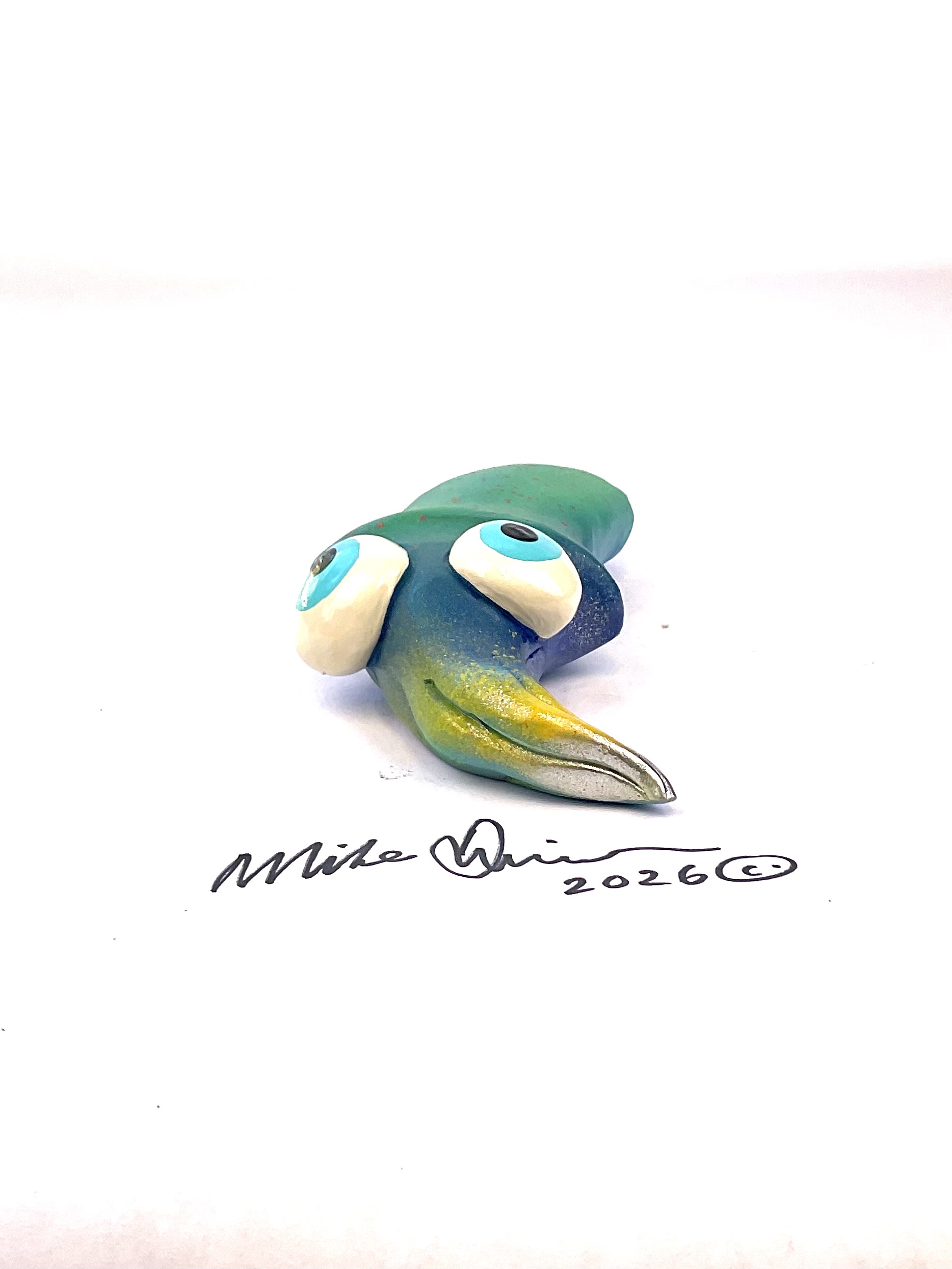 This piece is designed and created by artist Mike Quinn, it’s part of his Fish with Attitude collection. It’s one of a kind nature means it will have unique markings, design, spots, teeth, fur, claws or whatever is applicable to the creature posted.