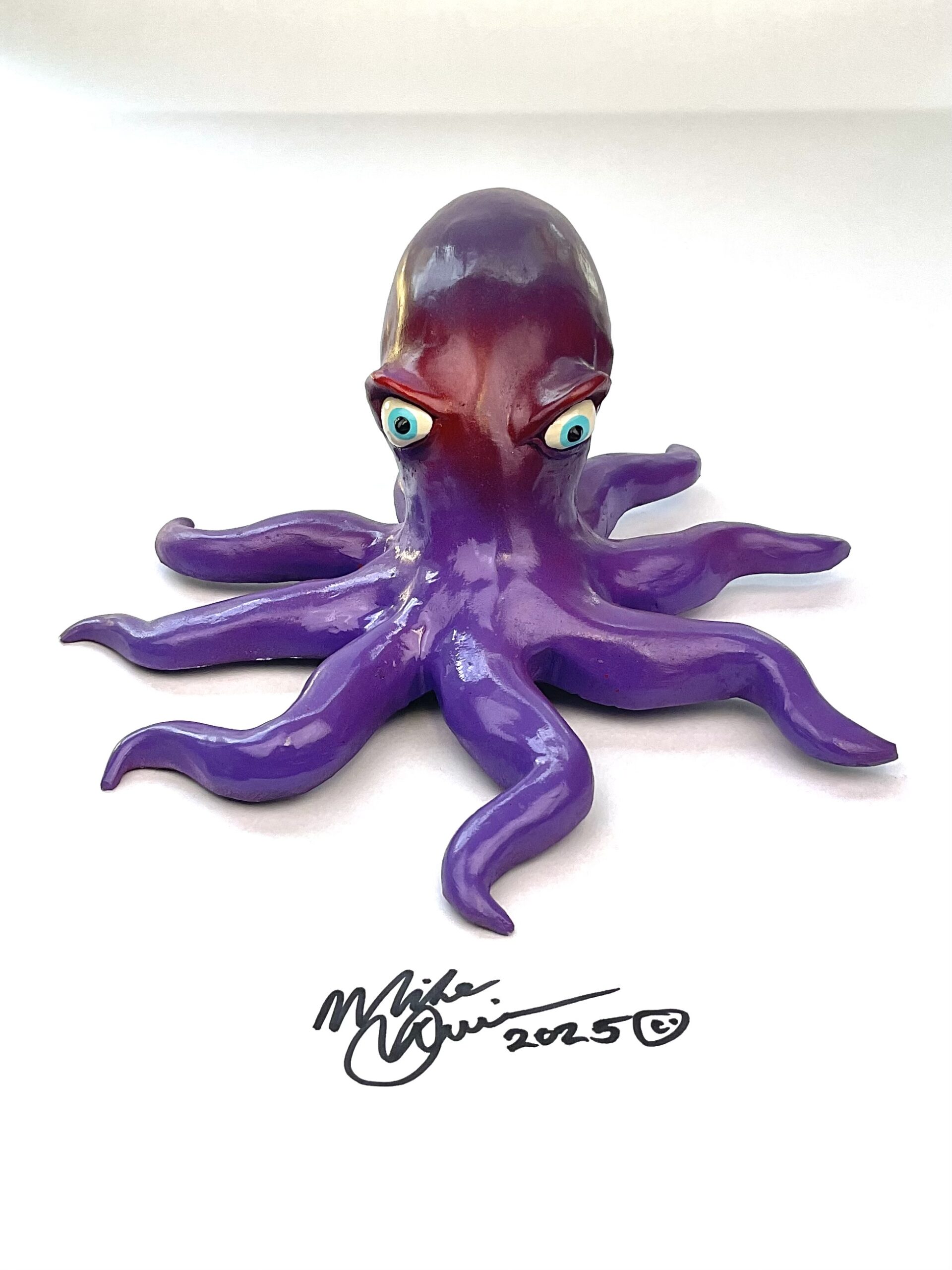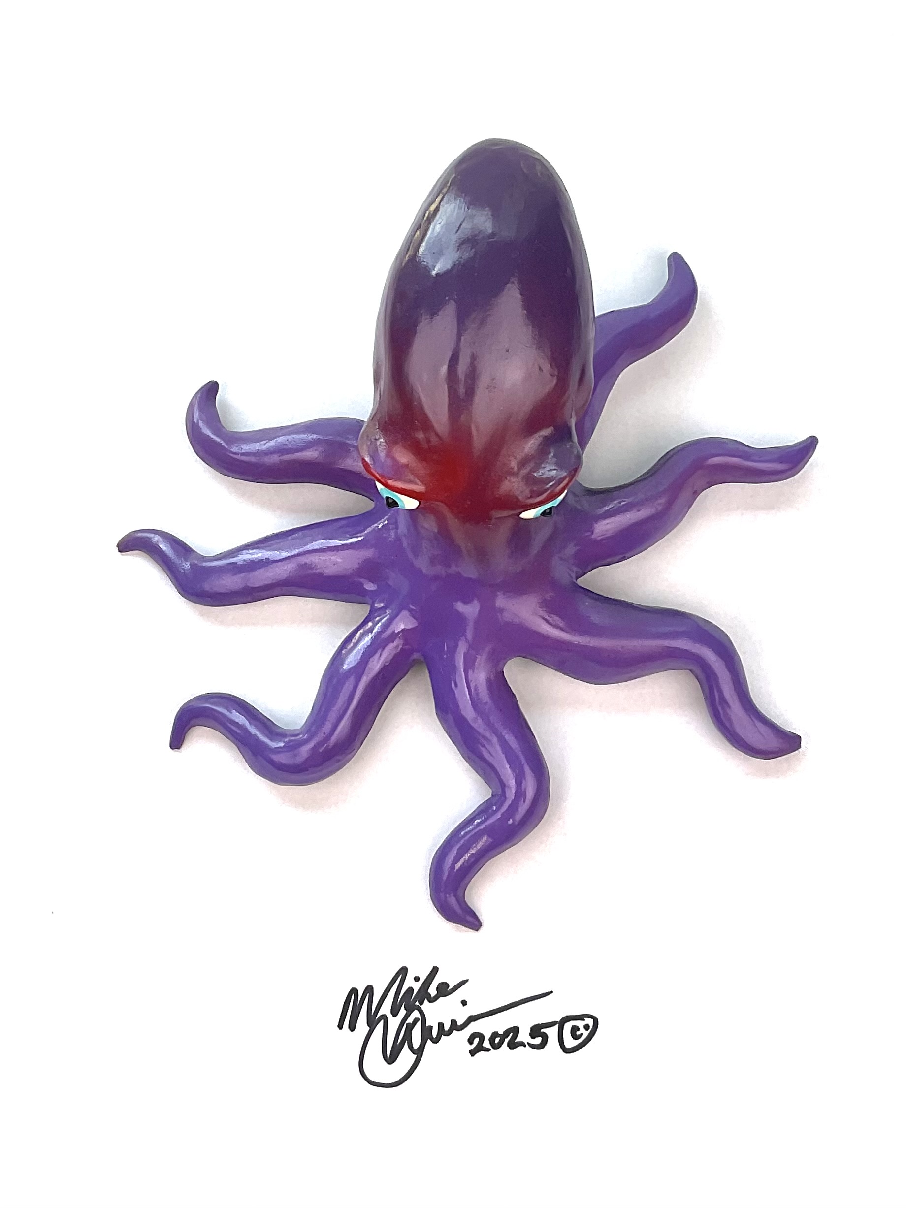 This snazzy octopus is named “Steve Oh”. An elusive predator of the business world, he’s got 8 legs and owns 9 businesses! His motto is to buy low and sell high. He’s sporting a hand-painted custom finish that is designed for indoor use or outside in a protected/covered area.