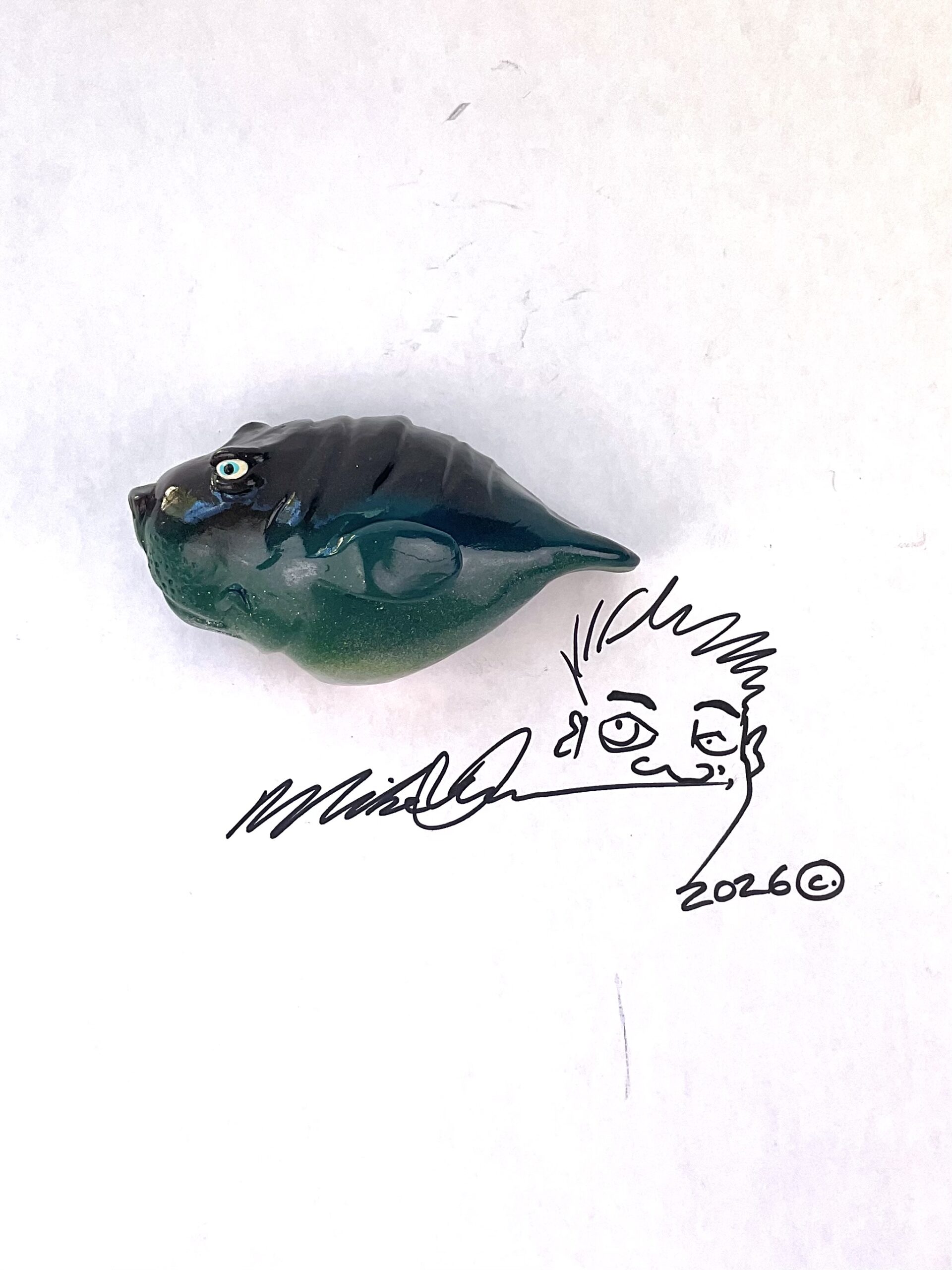 This piece is designed and created by artist Mike Quinn, it’s part of his Fish with Attitude collection. Its one-of-a-kind nature means it will have unique markings, design, spots, teeth, fur, claws or whatever is applicable to the creature posted.