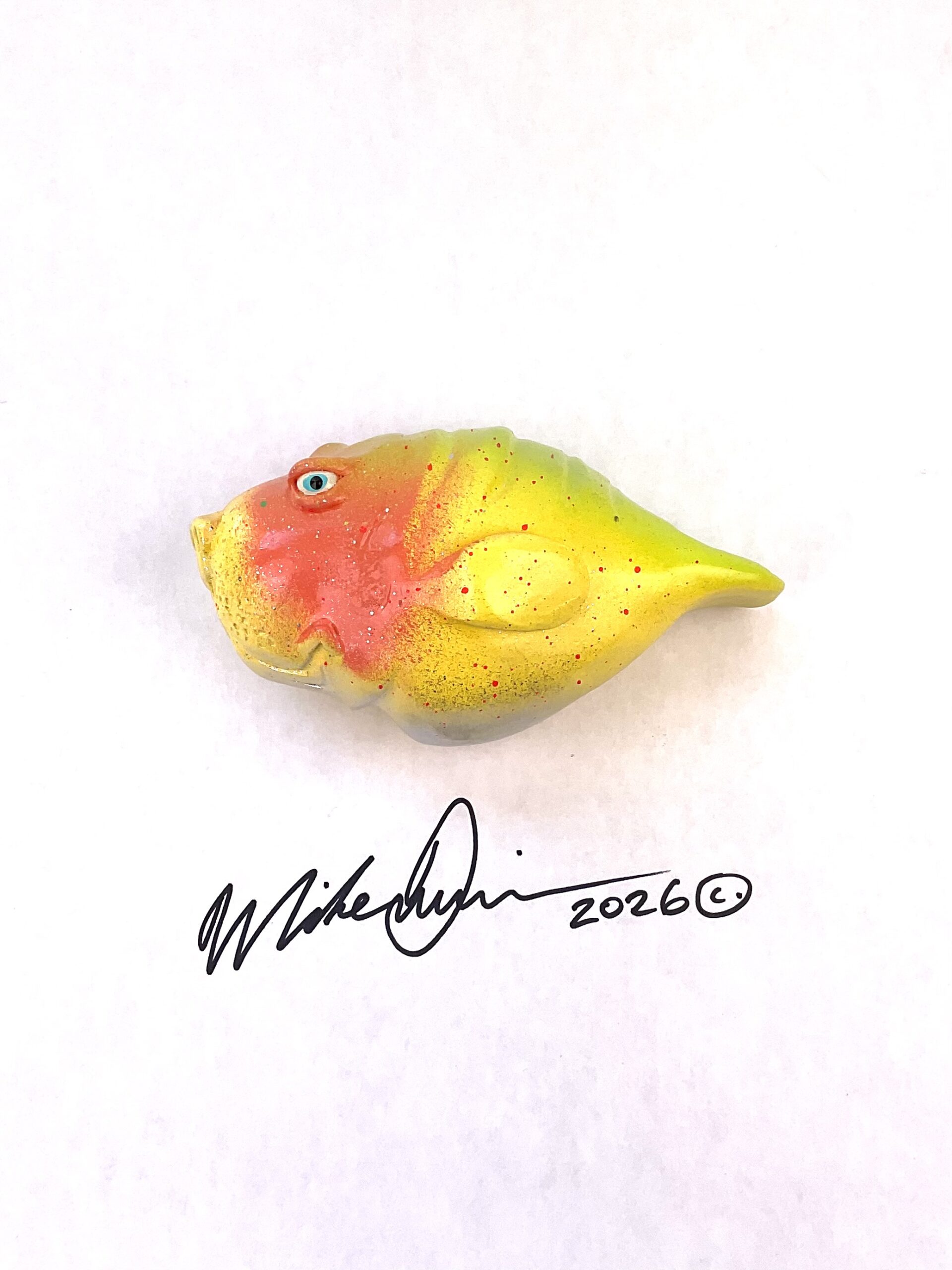 This piece is designed and created by artist Mike Quinn, it’s part of his Fish with Attitude collection. Its one-of-a-kind nature means it will have unique markings, design, spots, teeth, fur, claws or whatever is applicable to the creature posted.