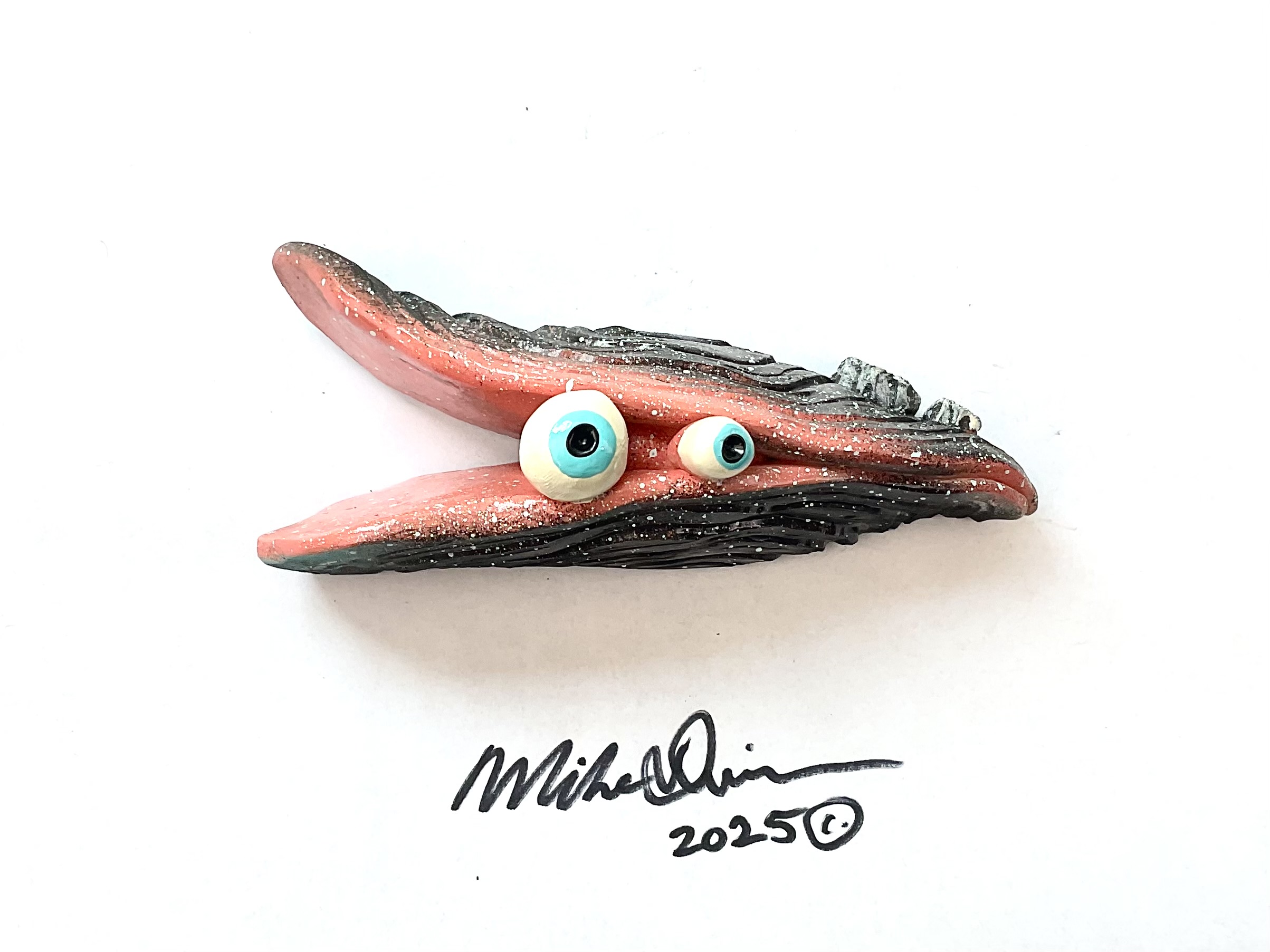 This piece is designed and created by artist Mike Quinn, it’s part of his Fish with Attitude collection. It’s one of a kind nature means it will have unique markings, design, spots, teeth, fur, claws or whatever is applicable to the creature posted.