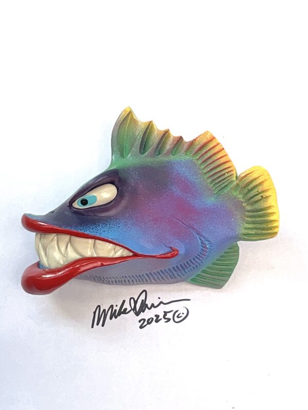 This piece is designed and created by artist Mike Quinn, it’s part of his Fish with Attitude collection. It’s one of a kind nature means it will have unique markings, design, spots, teeth, fur, claws or whatever is applicable to the creature posted.