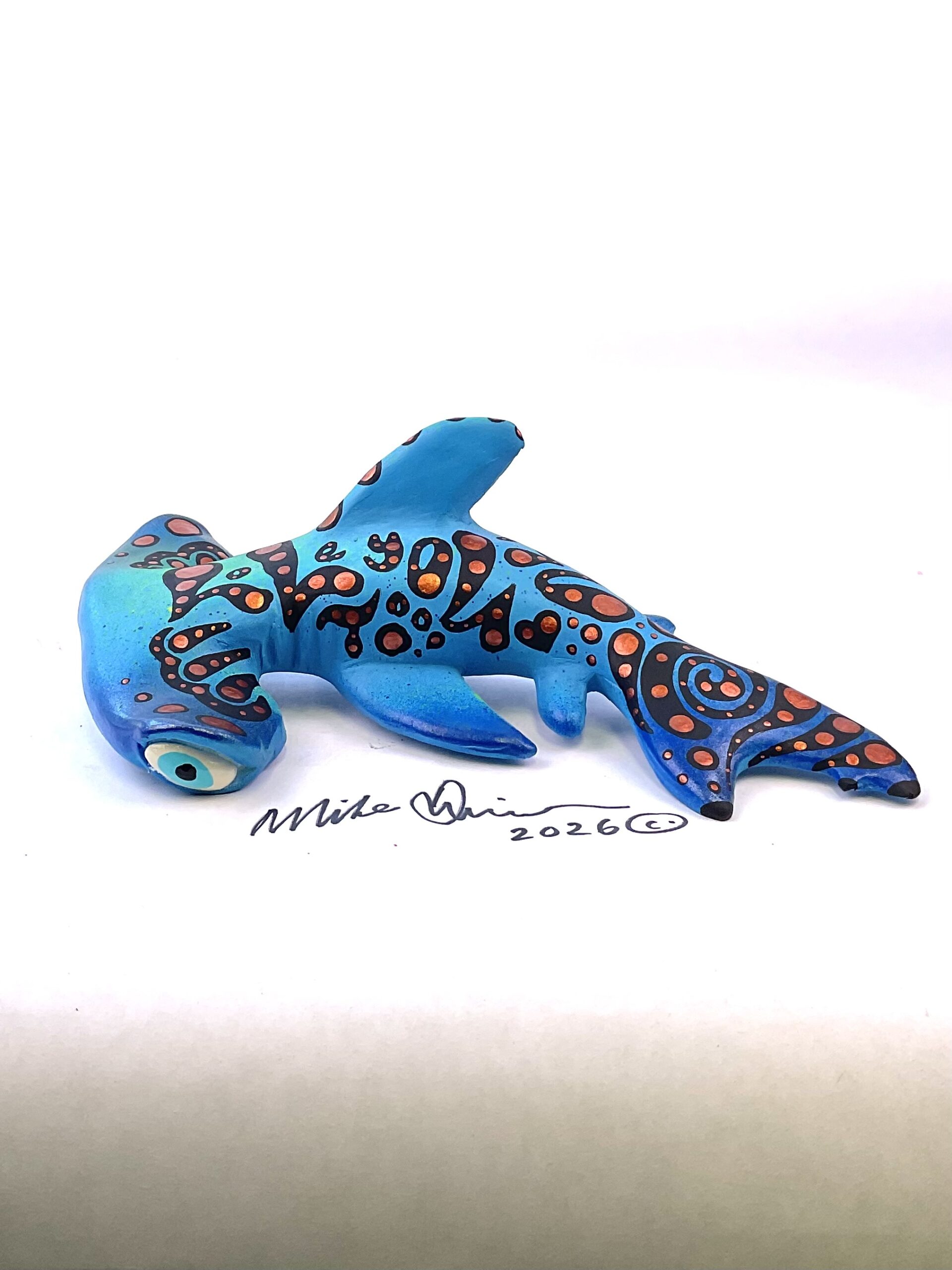 This piece is designed and created by artist Mike Quinn, it’s part of his Fish with Attitude collection. It’s one of a kind nature means it will have unique markings, design, spots, teeth, fur, claws or whatever is applicable to the creature posted.