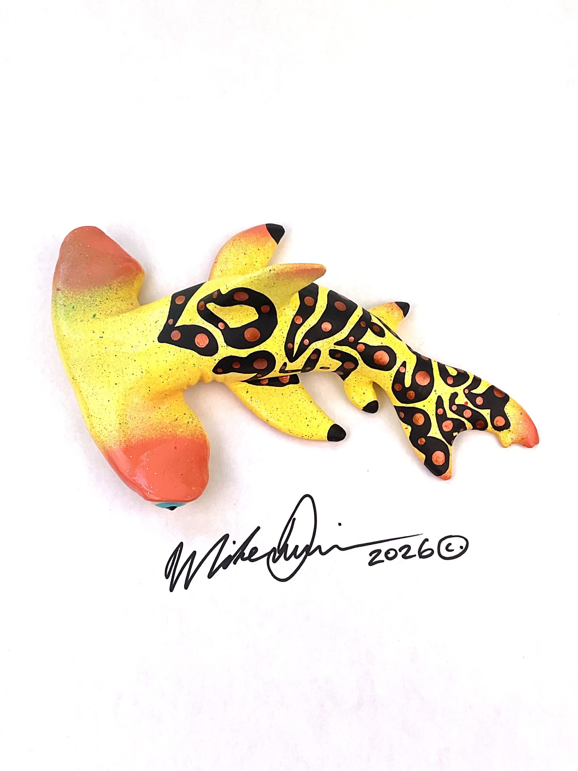 This piece is designed and created by artist Mike Quinn, it’s part of his Fish with Attitude collection. It’s one of a kind nature means it will have unique markings, design, spots, teeth, fur, claws or whatever is applicable to the creature posted.