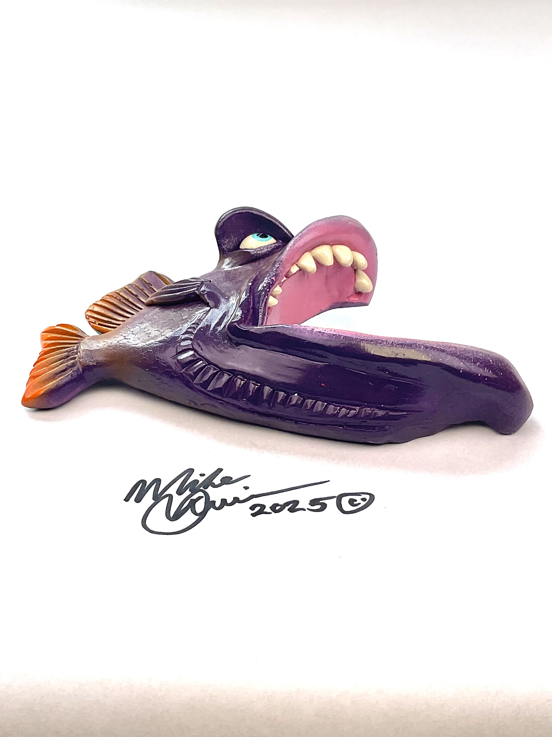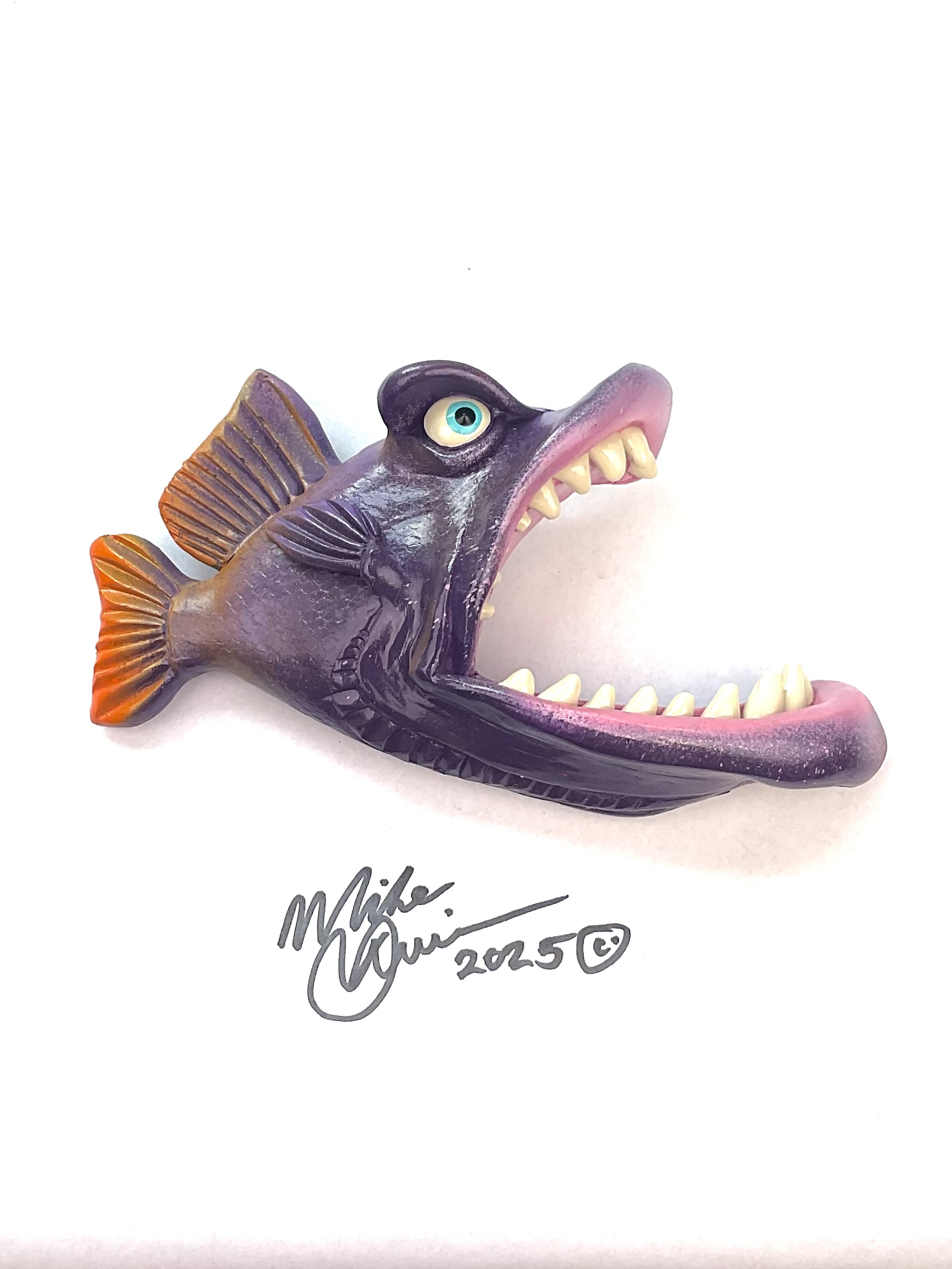This piece is designed and created by artist Mike Quinn, it’s part of his Fish with Attitude collection. It’s one of a kind nature means it will have unique markings, design, spots, teeth, fur, claws or whatever is applicable to the creature posted.
