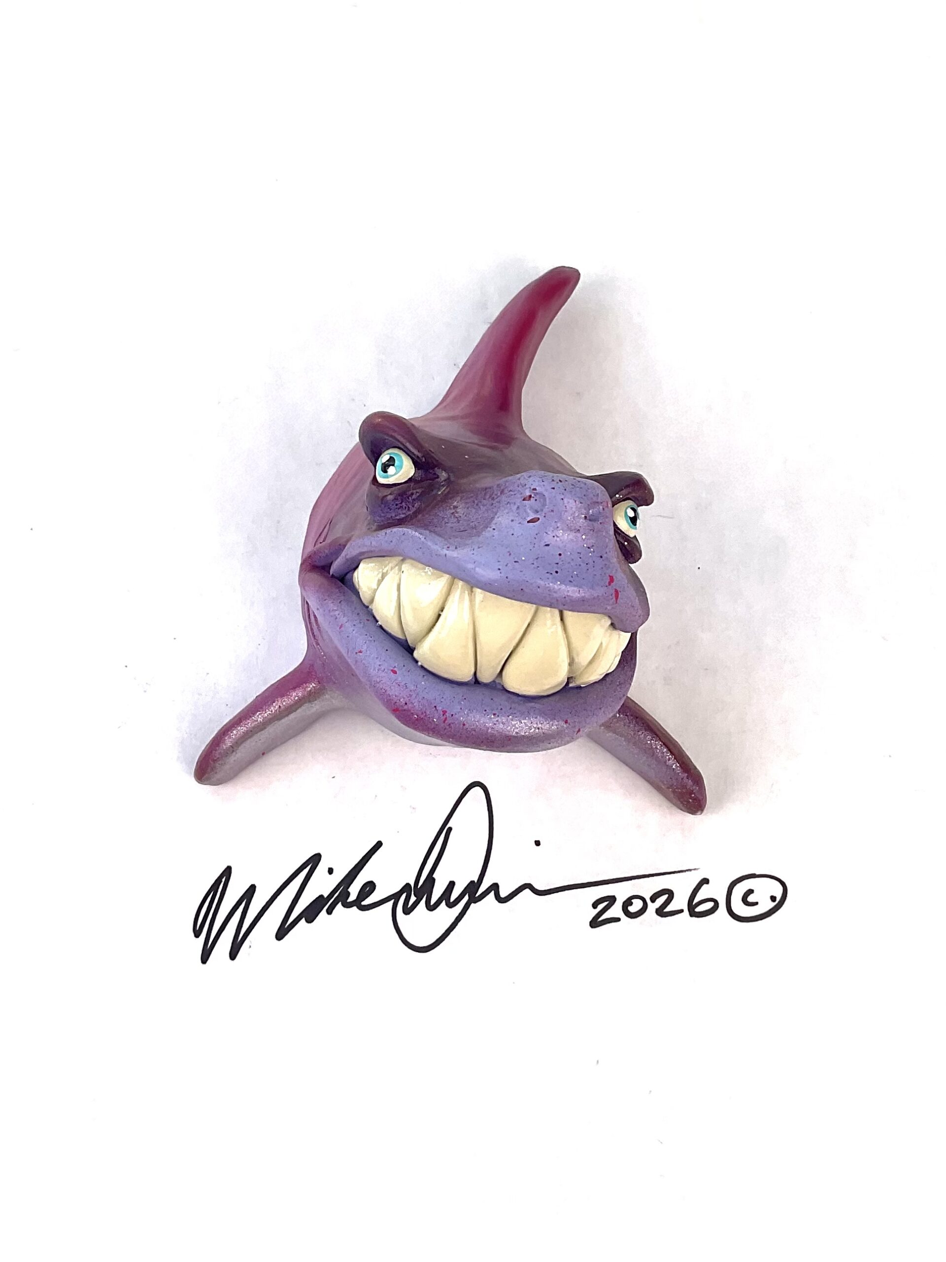 This piece is designed and created by artist Mike Quinn, it’s part of his Fish with Attitude collection. Its one of a kind nature means it will have unique markings, design, spots, teeth, fur, claws, or whatever is applicable to the creature posted.