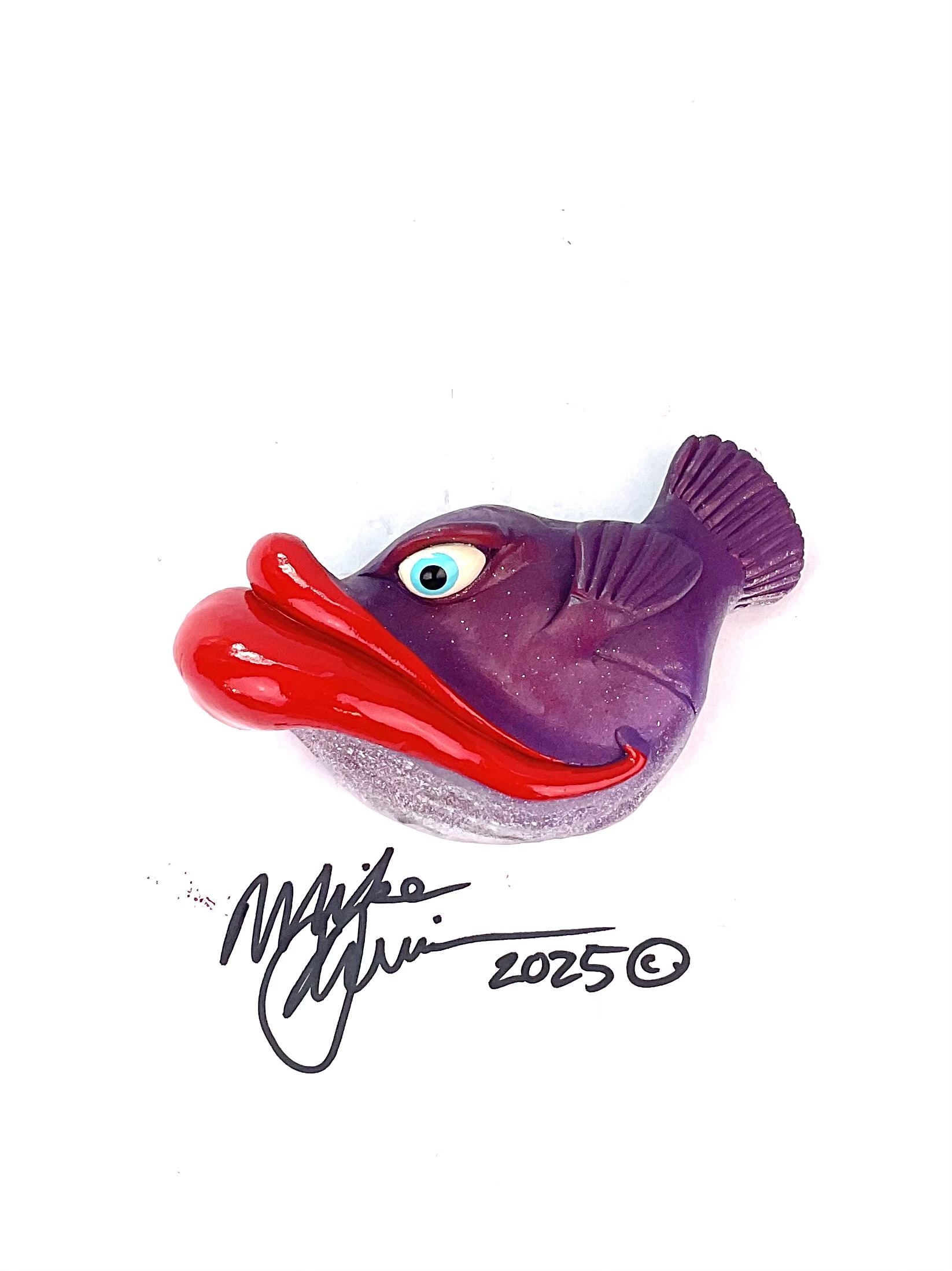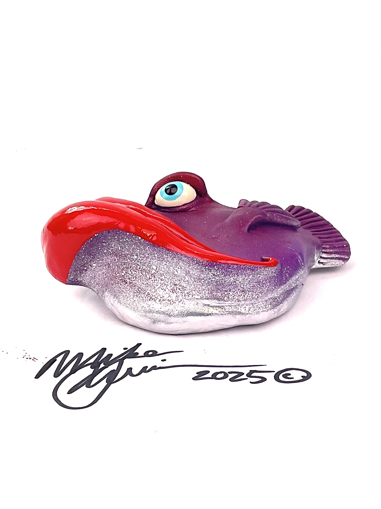 This piece is designed and created by artist Mike Quinn, it’s part of his Fish with Attitude collection. It’s one of a kind nature means it will have unique markings, design, spots, teeth, fur, claws or whatever is applicable to the creature posted.