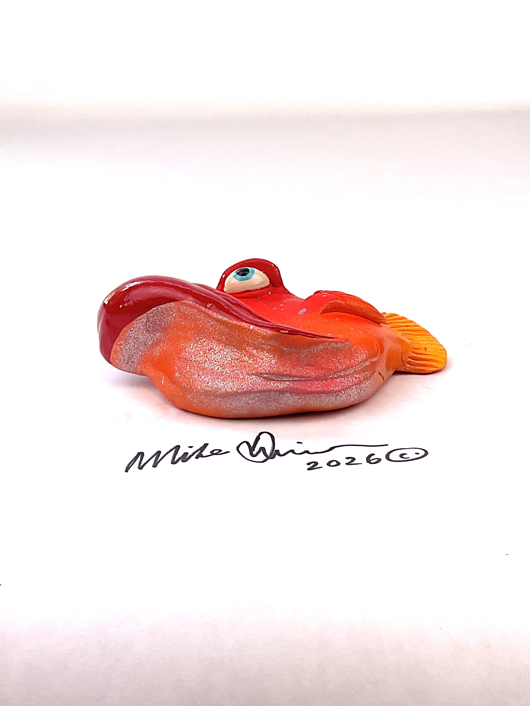 This piece is designed and created by artist Mike Quinn, it’s part of his Fish with Attitude collection. It’s one of a kind nature means it will have unique markings, design, spots, teeth, fur, claws or whatever is applicable to the creature posted.