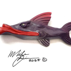 This piece is designed and created by artist Mike Quinn, it’s part of his Fish with Attitude collection. It’s one of a kind nature means it will have unique markings, design, spots, teeth, fur, claws or whatever is applicable to the creature posted.