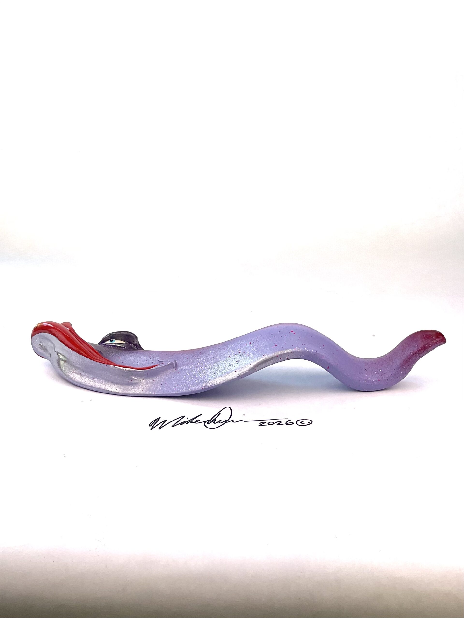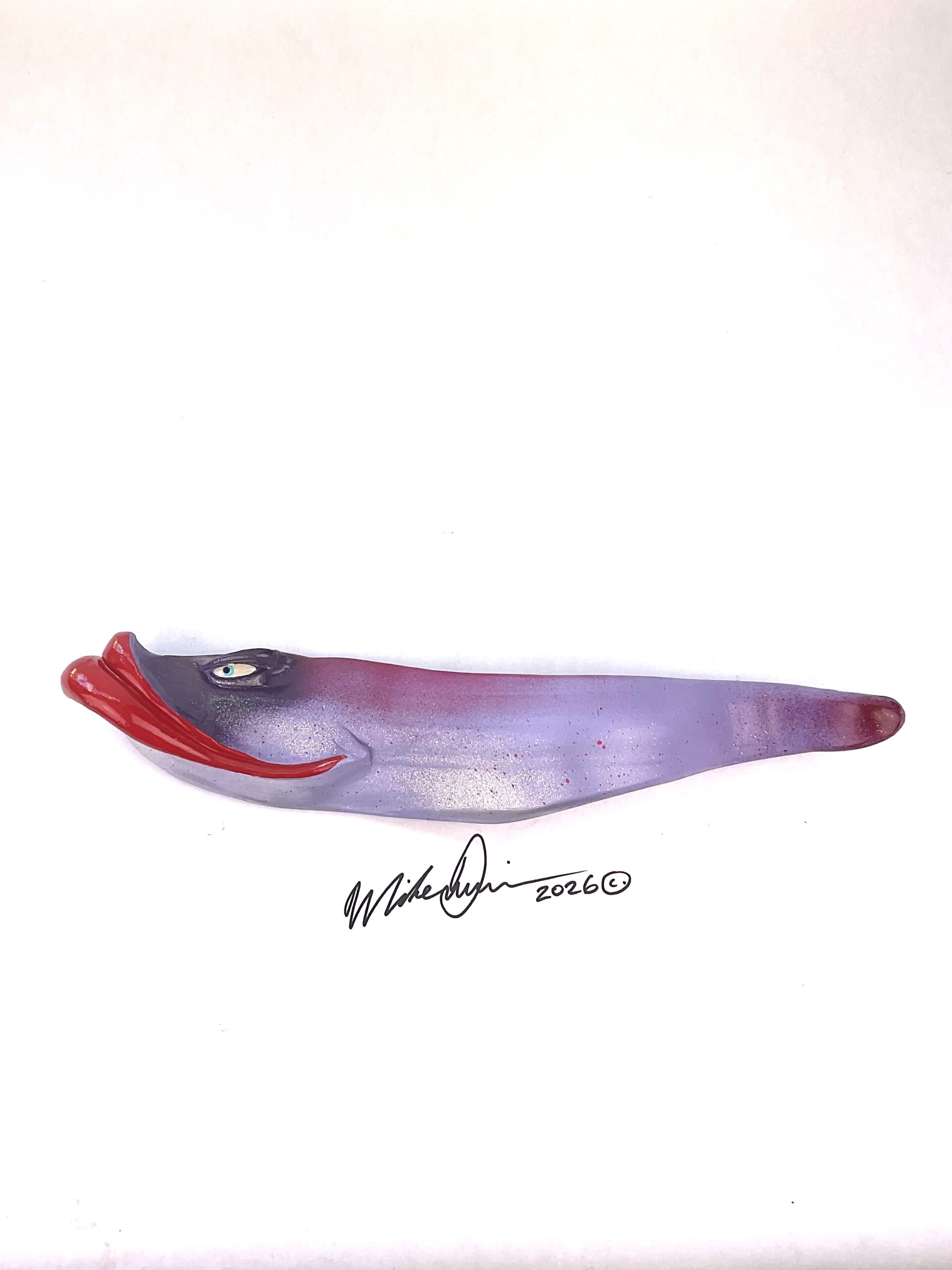 This piece is designed and created by artist Mike Quinn, it’s part of his Fish with Attitude collection. It’s one of a kind nature means it will have unique markings, design, spots, teeth, fur, claws or whatever is applicable to the creature posted.