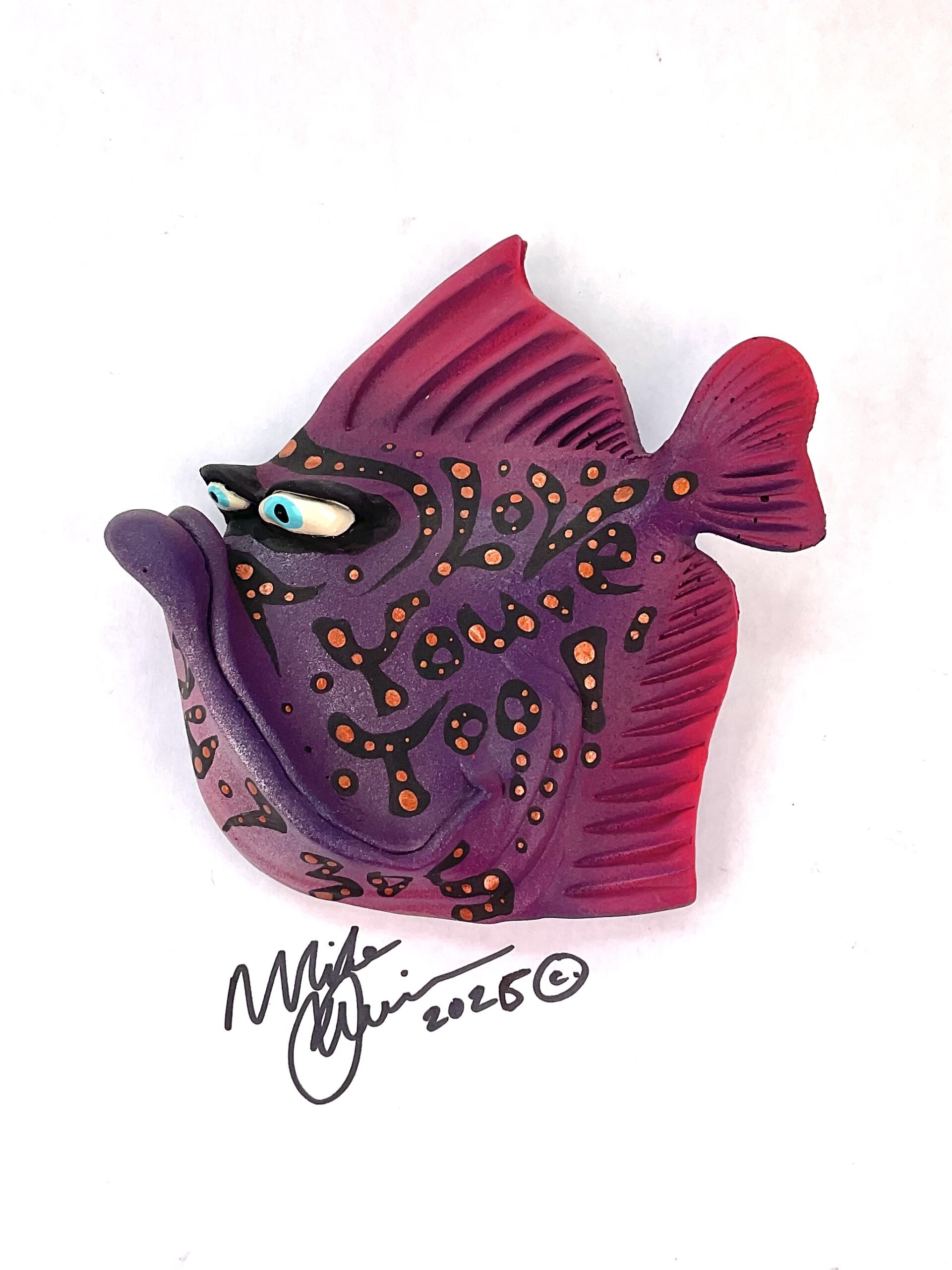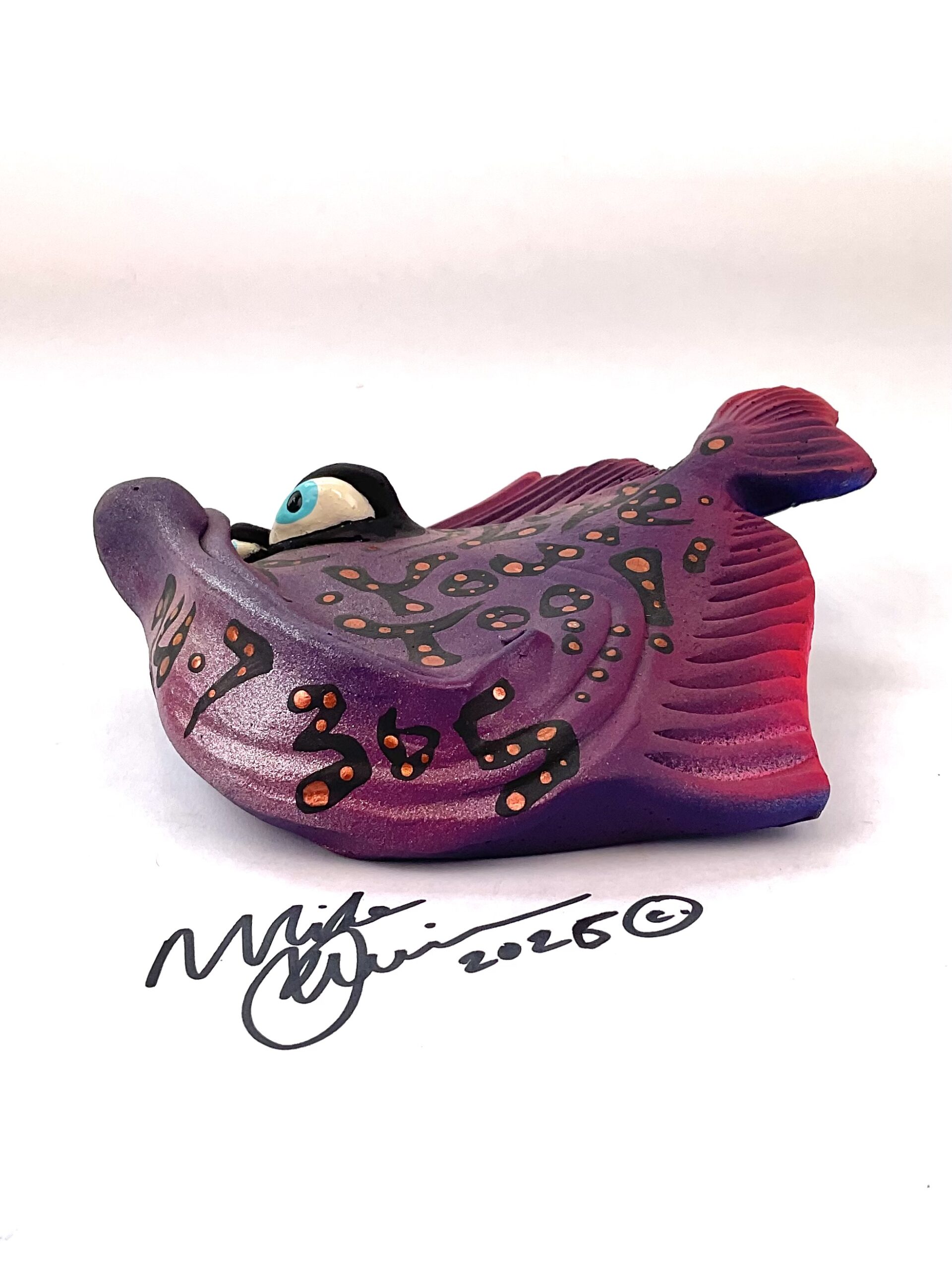 This piece is designed and created by artist Mike Quinn, it’s part of his Fish with Attitude collection. It’s one of a kind nature means it will have unique markings, design, spots, teeth, fur, claws or whatever is applicable to the creature posted.